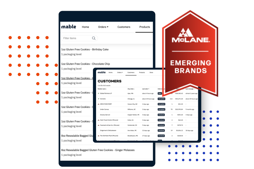 Once setup is complete, your products will be available for McLane retailers to view and add to their product assortment through McLaneMarketplace.com. You'll manage your orders, customers, and catalog through Mable's seller portal and you’ll receive UINs, sell sheet templates and an official Emerging Brands badge to promote your products to McLane retailers.